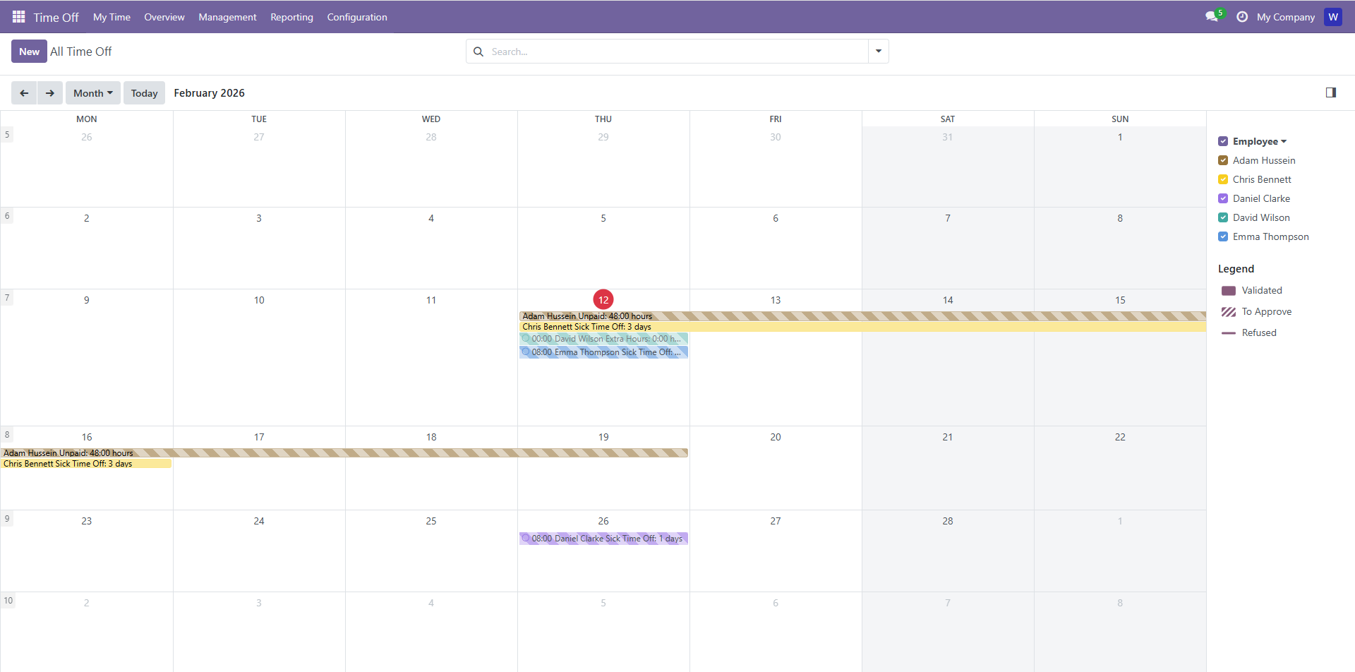 Clock in/out, overtime tracking, holiday management, and sickness monitoring.